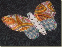 I also cut enough extras to do an additional border. After I (my girls) decided no more borders I had a handful of beautiful butterflies that needed a project to show them off. I rather enjoyed embellishing each a bit different then my normal appliqué. It was fun to see what stitches I had and what they could do.